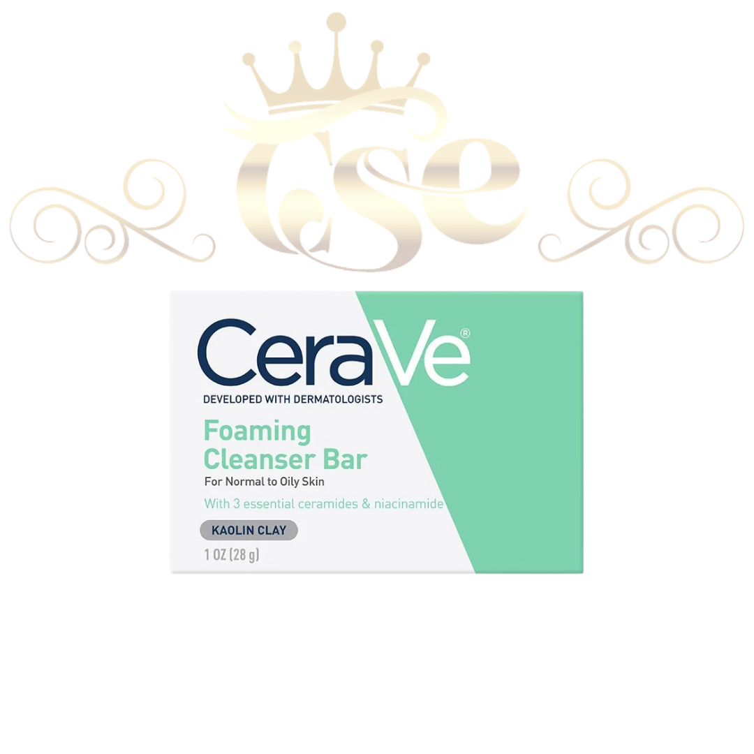 Description: A gentle cleansing bar designed for normal to oily skin, formulated to remove excess oil, dirt, and impurities without disrupting the skin’s natural barrier. CeraVe Foaming Cleanser Bar for Normal to Oily Skin 128g combines ceramides, hyaluronic acid, and niacinamide to cleanse effectively while maintaining hydration and supporting healthy skin. This non-irritating, fragrance-free bar leaves skin feeling clean, soft, and balanced. ________________________________________ Key Benefits: • Gently cleanses and removes excess oil and impurities • Helps restore and maintain the skin barrier • Hydrates and soothes skin with ceramides and hyaluronic acid • Non-drying and non-irritating formula • Fragrance-free and suitable for sensitive skin • Ideal for daily use on face and body ________________________________________ How to Use: 1. Wet the bar and work into a lather. 2. Massage onto wet skin, focusing on areas prone to oiliness. 3. Rinse thoroughly. 4. Use daily as part of your skincare routine. ________________________________________ Skin Type: • Suitable for normal to oily skin • Especially beneficial for: o Combination or oily skin o Acne-prone skin o Skin needing gentle yet effective cleansing ________________________________________ Key Ingredients: • Ceramides (NP, AP, EOP) — restore and maintain the skin barrier • Hyaluronic Acid — hydrates and retains moisture • Niacinamide — soothes and calms the skin ________________________________________ Major Ingredients (Full): Sodium Cocoyl Isethionate, Stearic Acid, Water (Aqua), Sodium Palmitate, Glycerin, Sodium Stearate, Niacinamide, Ceramide NP, Ceramide AP, Ceramide EOP, Sodium Hyaluronate, Cholesterol, Phenoxyethanol, Caprylyl Glycol, Sodium Hydroxide, Tocopherol, Disodium EDTA ________________________________________ Size / Quantity: • 128 g ________________________________________ Country of Origin: • Made in the USA ________________________________________ Disclaimer: For external use only. Avoid contact with eyes. Discontinue use if irritation occurs. Patch test recommended for sensitive skin. Ingredients and packaging may vary by batch.
